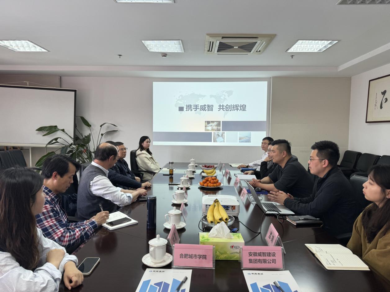 安徽威智建设集团有限公司执行总经理蔡一帆、安徽新时代建筑设计有限公司董事长方传斌分别接待成祖德一行,并召开合作洽谈会。各公司人力资源部、工程部等有关职能部门负责人参加会议。