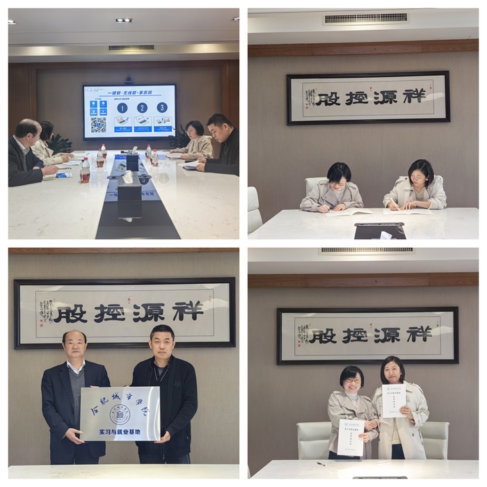 系列二:4月3日,校纪委书记李义宝率图书馆、建筑与艺术学院有关负责人赴安徽祥融园林有限公司进行访企拓岗,达成校企合作协议并签约。