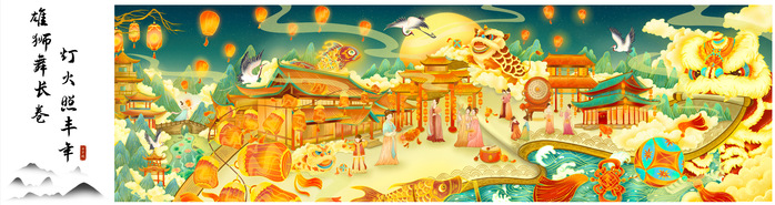 在漫画插画类比赛中,视觉传达设计专业的李梦蝶同学创作的《雄师舞长卷,灯火照丰年》荣获本科组一等奖。作品以生动的笔触和丰富的色彩,展现了节日的喜庆氛围和传统文化的魅力。
