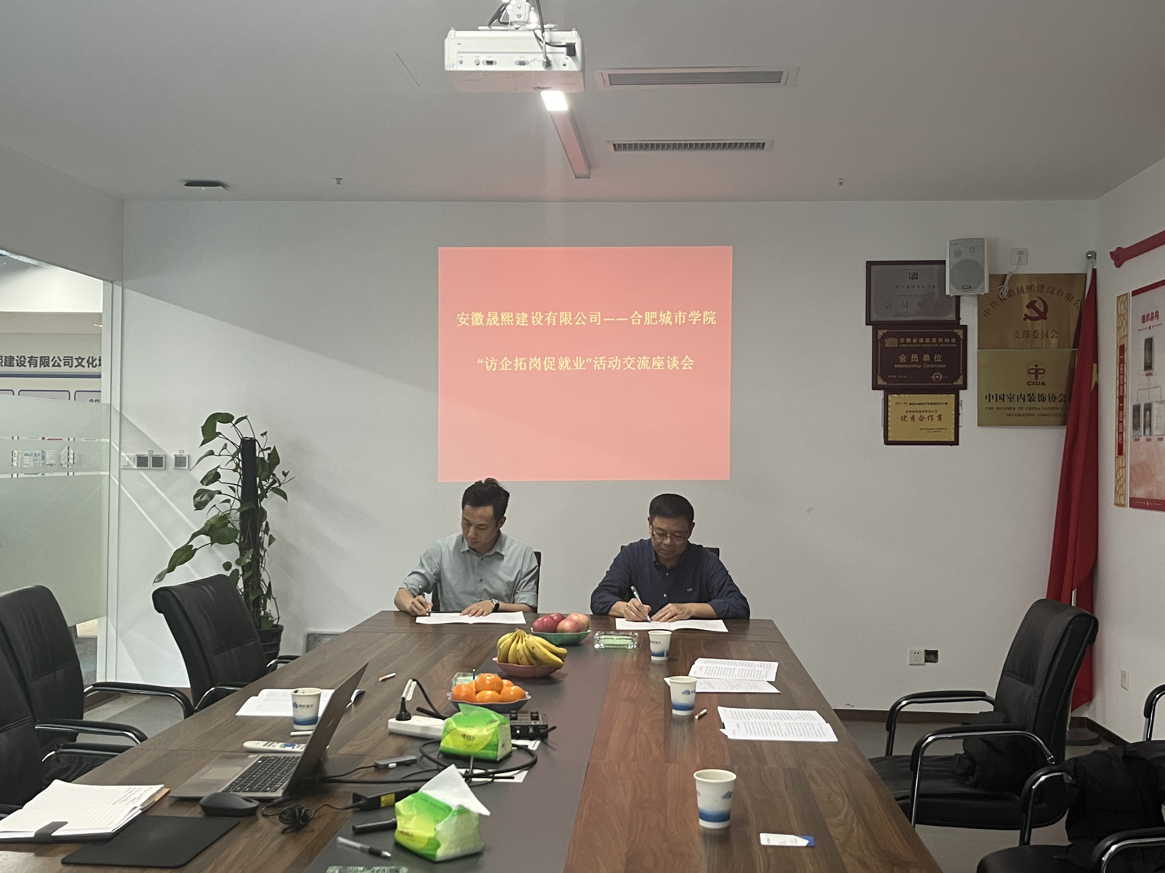 4月26日下午,土木工程学院院长雷庆关率队赴安徽晟熙建设有限公司进行访企拓岗促就业专项调研,深入了解企业人才需求,洽谈校企合作。