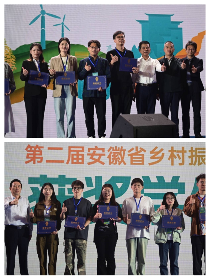 在颁奖典礼上,我校获奖师生应邀参加随后举行第二届安徽省乡村振兴高峰对话,现场聆听众多专家以“多维要素聚合,共惠千万工程”“百校联百县兴千村”为主题展开的学术研讨。