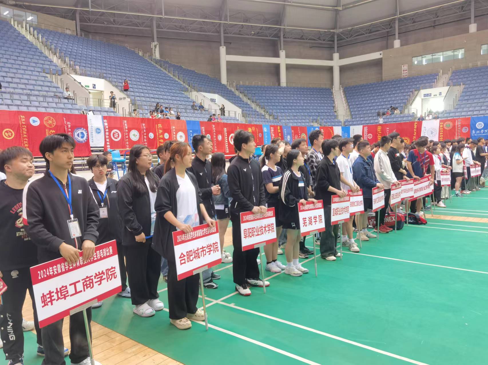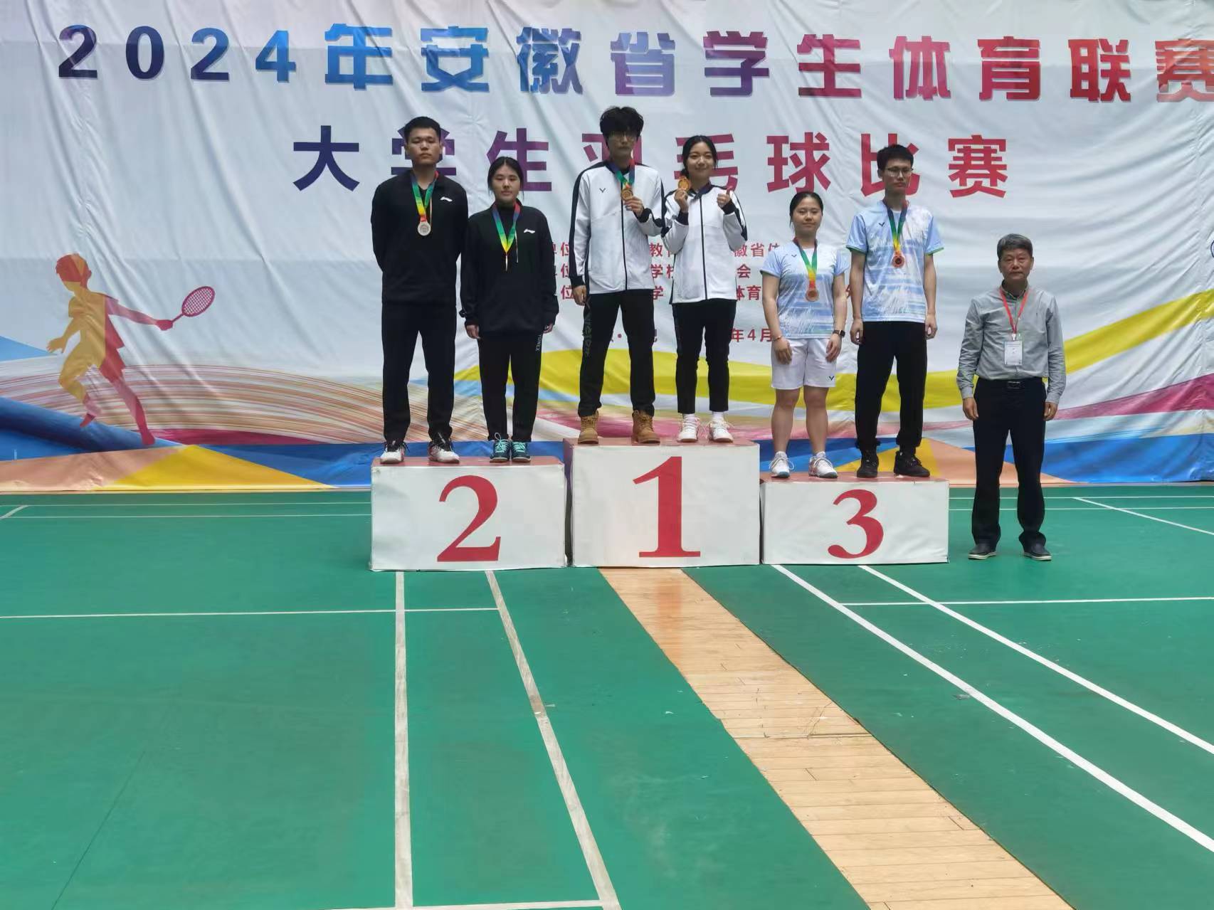 本网讯:4月23日,2024年安徽省学生体育联赛大学生羽毛球比赛决赛在安徽大学体育馆盛大举行,省内各高校运动员齐聚安徽大学,共享我省大学生羽毛球体育盛事。此次大赛共有全省78所高校共684名运动员参赛,参赛高校、参赛运动员数量均创造历史新高。我校由体育教研室陈林老师、朱娜率队羽毛球队10名运动员出征参赛。