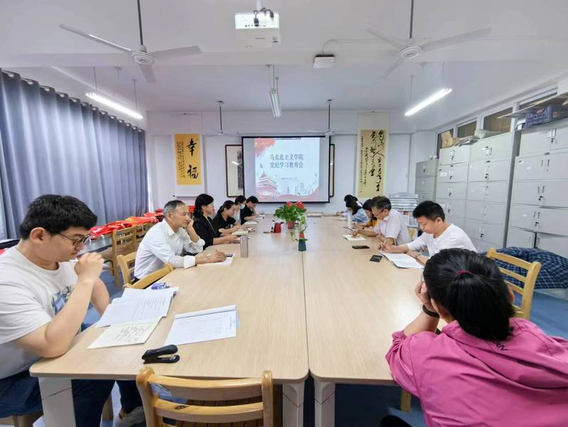 5月30日下午,为深入学习贯彻习近平总书记关于党纪学习教育的重要讲话重要指示精神和中央部署要求,认真学习领会新修订的《中国共产党纪律处分条例》,马克思主义学院教工党支部在实验楼北510会议室召开了专题学习会,本次学习会由教工党支部书记程海苗主持,支委成员、全体党员参加了会议。