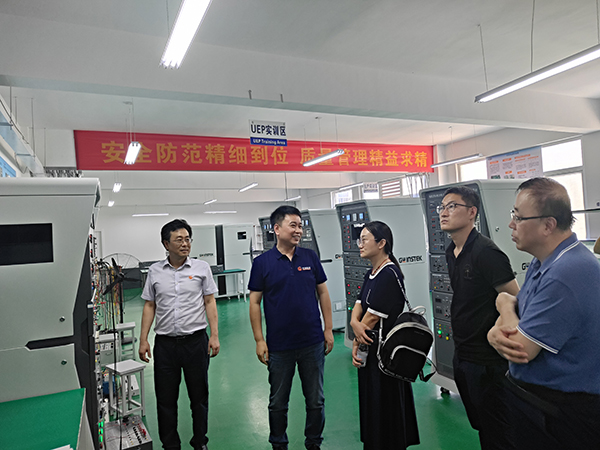 梁颖一行在芒课教育董事长蔡先保,营销副总经理张辉,基地副主任夏武松,营销大区经理王英会的陪同下参观了“电力电子&电力传动&新能源产教融合基地”,并参观了外加工生产厂区和组装测试产线、电机工程训练系统、电力电子开发设计与实训系统、电机学/电力电子/运动控制系统通用平台、电子信息类创新实践教育基地,包括电工电子创新实训基地、竞赛综合实训基地、迷宫鼠竞赛和人工智能实训基地等;深入了解芒课教育先进的教育资源和学生培训工作成果,梁颖对双方的合作表示了热烈的祝贺和期待。