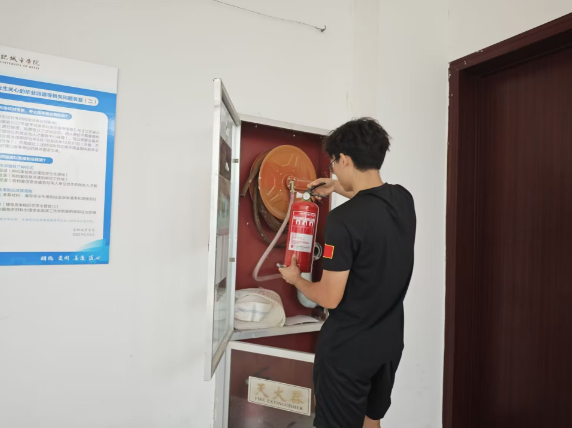 检查小组一行坚持从细着手,实地察看了各公共楼宇、学生公寓、实验楼等重点部位灭火器、消防栓是否完好有效,疏散通道、安全出口是否畅通、每月检查台账、灭火器使用标识等情况,进行了全方位、深层次、精准化的校园安全隐患大排查,力求不留死角、不漏盲区。