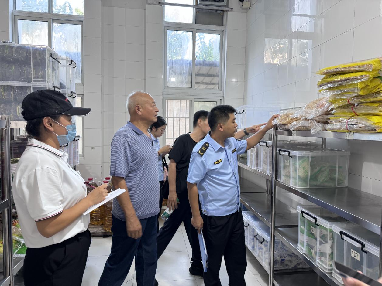 为深入贯彻落实习近平总书记关于食品安全工作的重要论述,全面保障校园餐饮安全,提升食堂服务质量。8月30日,巢湖市市场管理局副局长丁明峰、巢湖市食品药品监督管理局局长王升、执法队队长王少华、黄麓镇市场管理所所长程波等一行莅临滨湖校区食堂开展食品安全卫生专项检查。副校长杨彦友、后勤保卫处处长祝杰、网络管理中心副主任胡晓锋、安徽中膳餐饮管理有限公司董事长刘勇等负责人陪同检查。