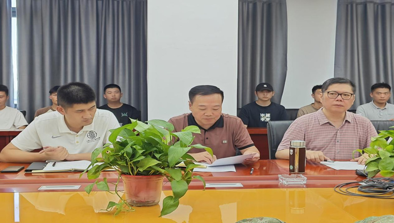 为切实做好2024级新生军训工作,更好提升学生军事训练质量,确保军训顺利完成,9月9日,机械与电气工程学院在综训楼9楼会议室召开2024级新生军训教官见面会。副校长杨彦友、承训部队带队干部郭佳晖、机械与电气工程学院领导班子、各2024级新生辅导员和各连队教官参加会议,会议由机械与电气工程学院党总支负责人胡泽春主持。