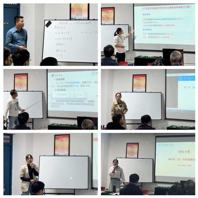 参赛的六位教师由各教研室推荐,按照事先抽签顺序,依次进行现场教学展示。各位参赛选手纷纷亮出各自的看家本领,教学方法灵活多样,既有深入浅出的理论阐述,也有生动有趣的案例分析,更有互动性强的课堂设计,充分展现了土木工程学院青年教师扎实的专业素养和独特的教学魅力。也巧妙结合了动画、图表、板书等多种元素进行教学,使课堂变得生动有趣,极大地提高了学生的学习兴趣和参与度。同时注重将课程思政融入教学,展现了较为扎实的教学基本功和求实求新的教学态度,体现了学院青年教师奋发向上、勇担育人使命的良好精神风貌。