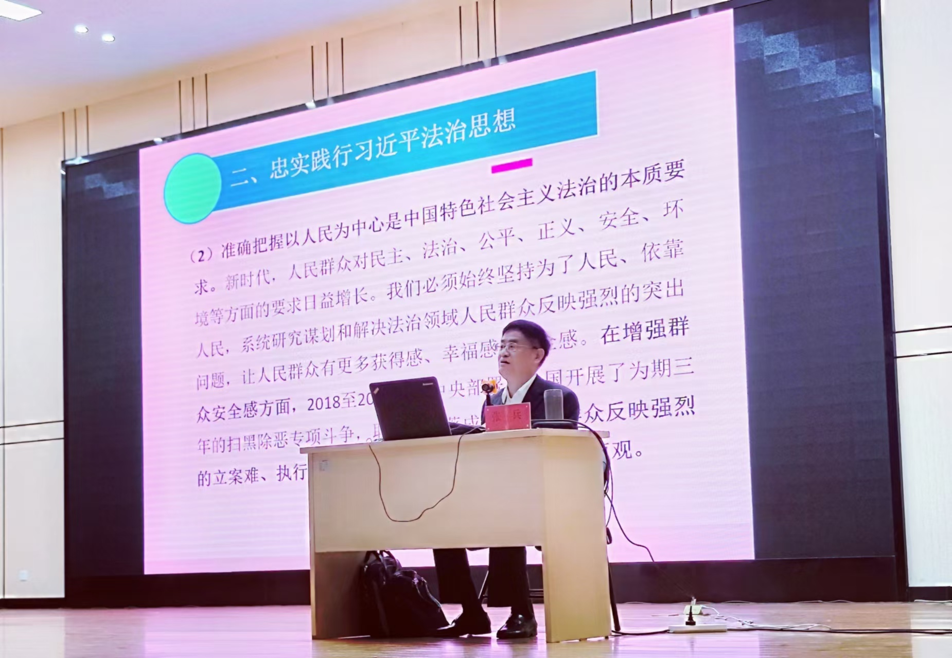 随后,张兵在讲座中回顾了中国法治的历史进程,深刻阐述了社会主义法治理念、法治地位和法律权威。他提出加强大学生法治教育,是新时代高校人才培养的重要环节,当代大学生要以习近平法治思想为指导,积极尊法,认真学法、自觉守法、主动用法,谨守法律底线,弘扬社会正气,强化社会责任感,做社会主义法治的忠实崇尚者、自觉遵守者和坚定捍卫者。