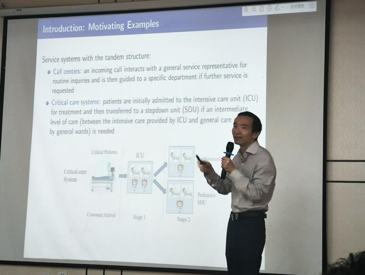 讲座开始,曹平教授分享了个人科研初心、成长故事及科研挑战与突破。介绍了运筹学在生活中的实际应用。并对生活中窗口排队、后勤运输等问题进行了讨论,同学们认真听讲并积极参与互动。曹平教授鼓励同学们在大学生活中要多去图书馆看不同领域的书籍,强调同学们不要因电子书针对自我喜好的推荐而思维固化。