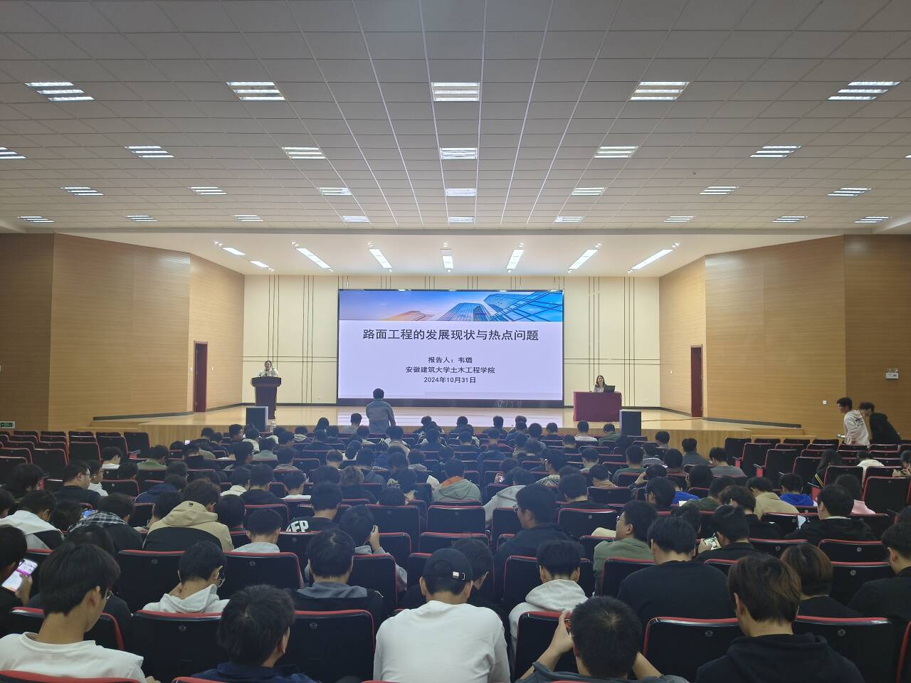 10月31日,一场精彩纷呈的“路面工程的发展现状与热点问题”讲座在大礼堂顺利举行。此次讲座吸引了众多土木与道桥专业同学们的积极参与,讲座由道桥专业朱柳婷老师主持。