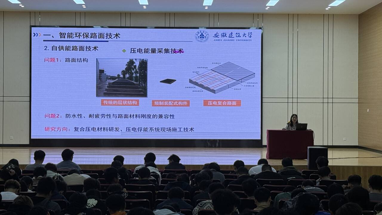 讲座过程中,韦璐围绕路面工程的智能环保路面技术、长寿命路面结构、路面检测与养护技术三个方面展开,通过生动的案例、详实的数据以及精彩的演示,为同学们带来了一场知识的盛宴。