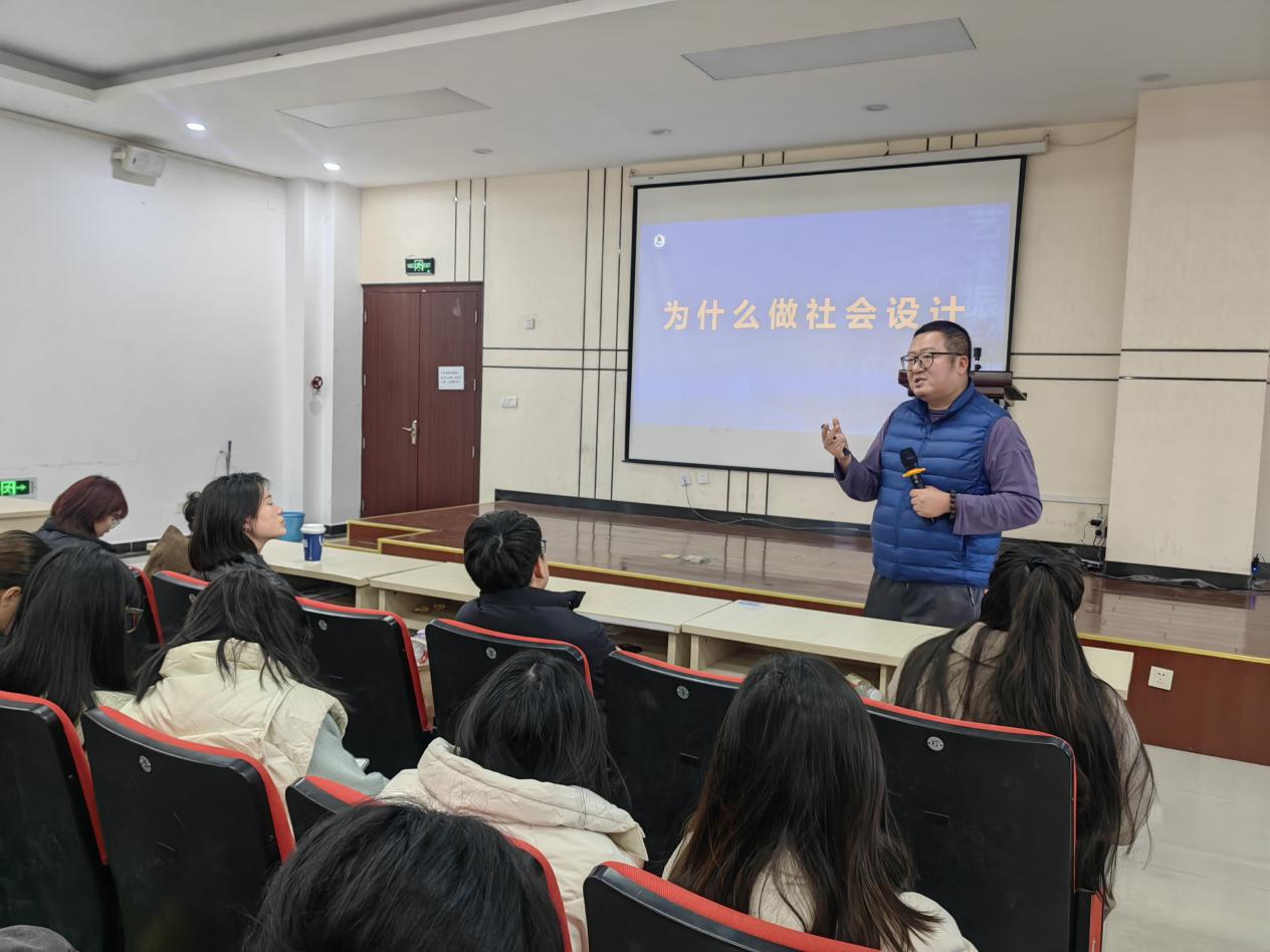 11月28日下午,在图书馆一楼报告厅举办了一场主题为“探索社会设计与实践教学体系的融合路径”的学术讲座。此次讲座由安徽财经大学艺术学院杨剑副教授主讲。