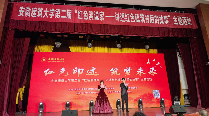 我校师生提前有序进入会场,迅速落座,静待演出开始。14时10分,“红色演说家--讲述红色建筑背后的故事”主题活动比赛正式开始。这场比赛凝聚了安徽建筑大学师生大量心血,从舞台设计到服装造型都独具一格,构筑起红色建筑背后故事的感人氛围。同学们饱含深情的演说,生动讲述一个又一个革命者和建设者的动人故事,把观众带回到烽火岁月,一位位凝聚着深厚家国情怀爱国者形象被生动演绎出来,带给观众强烈的心灵震撼。