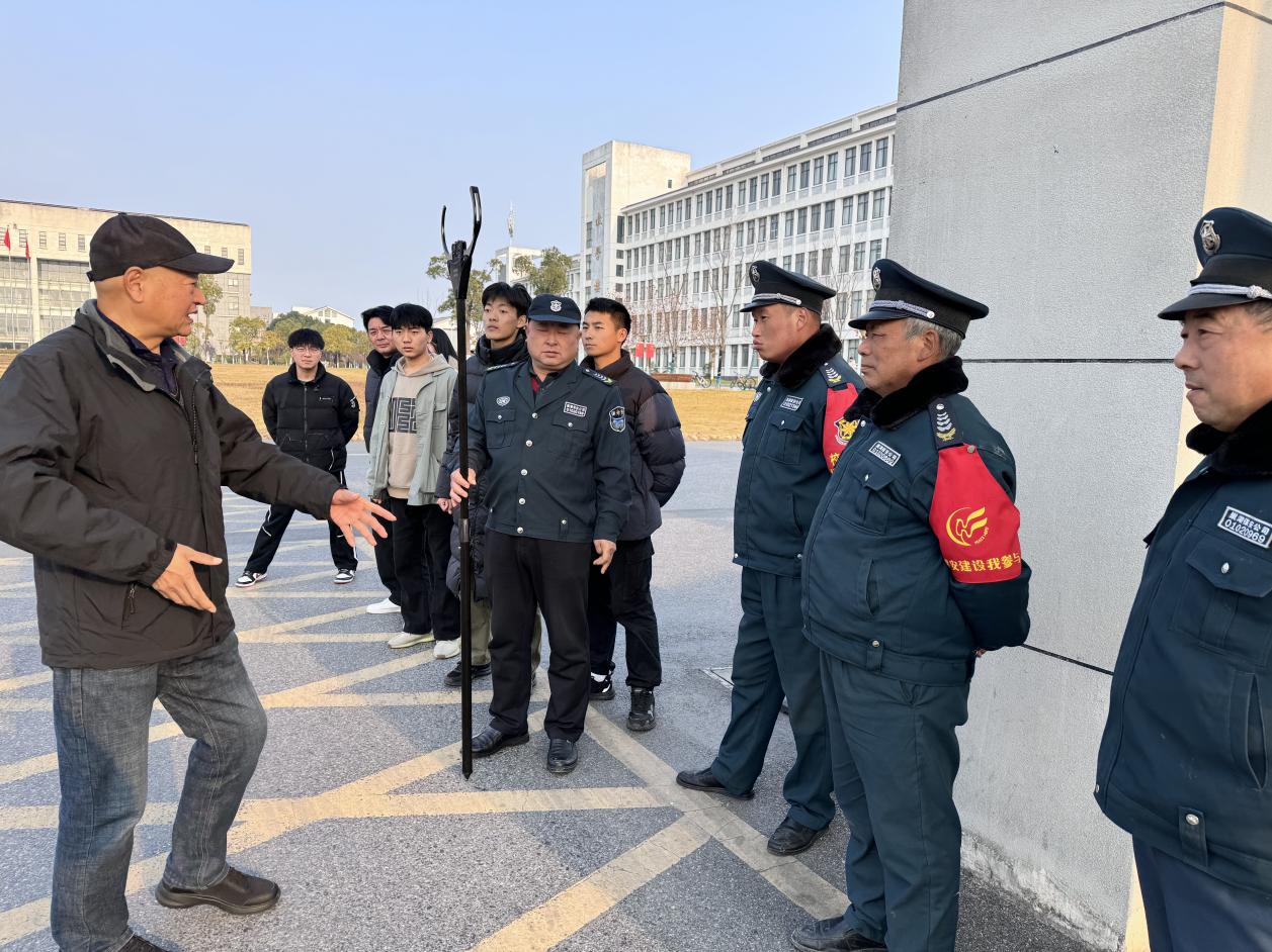 演练前,祝杰向现场参训人员详细讲解了反恐防暴知识,包括识别可疑人员和物品的方法、遭遇暴力袭击时的应对策略,围绕防卫战术、防卫器械使用等方面进行了初步技能培训,指导并示范实战动作要领和处突演练中的关键注意事项,同时详细讲解校园发生紧急情况时防暴盾牌、长棍、钢叉等各类警械设备的使用方法和操作要领,并现场指导大家进行“上手”实操等。讲解生动形象,结合实操示范让大家理解深刻。