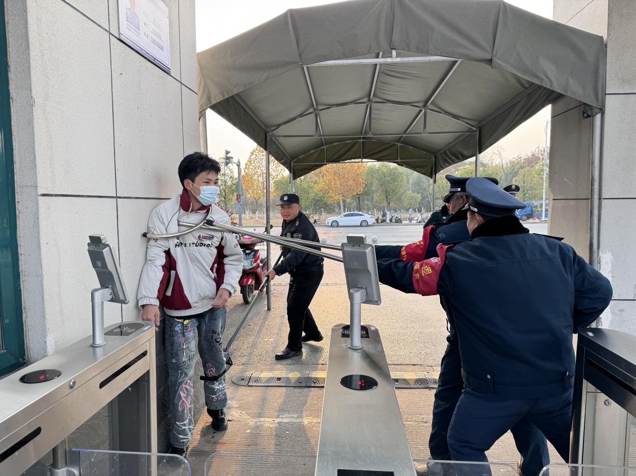 随着总指挥祝杰向两校区同步下达“演练开始!”指令,一男子不听询问直冲校门,保安人员迅速启动紧急预案,第一时间与“歹徒”交涉、周旋,制止其靠近学生,同时向星空在线注册(中国)官方网站-注册登录后勤保卫处汇报及拨打报警电话并向全校师生发出预警信号。面对危险的“歹徒”,保安人员利用手中的各种防暴工具,奋力与“歹徒”周旋搏斗,阻止“歹徒”冲进校园。通过短短几分钟时间便将“不法分子”制服,警报随之解除,星空在线注册(中国)官方网站-注册登录很快恢复了正常的秩序,演练活动圆满结束。