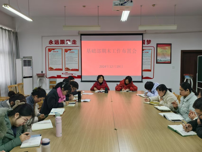 12月19日下午,基础部在实验楼北505会议室召开2024-2025年第一学期期末工作布置会,全体教师参加,北城教师线上参会。会议由基础部主任吕家云主持。
