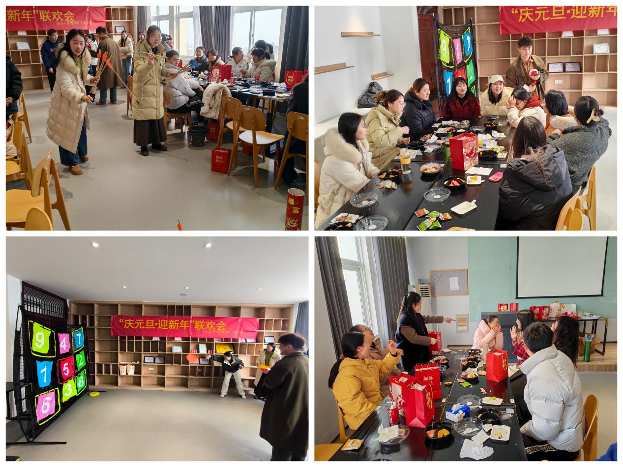 此次联欢会以趣味游戏为主。投壶区域古风古韵,教职工们手持羽箭,专注瞄准壶口,羽箭轻掷,精准入壶,现场喝彩声不断,在一投一掷间感受传统文化魅力;飞盘游戏区活力四射,彩色飞盘在参与者手中飞舞,飞盘旋转着飞向目标,命中得分与默契配合,让大家充分体验到运动的激情,欢笑声和加油声交织;狼人杀和桌游区域是脑力激荡的战场,天黑请闭眼、天亮请睁眼,是紧张的心跳和激烈的思维交锋,逻辑火花碰撞,玩家们沉浸其中;其他桌游也各具特色,教职工们在棋盘与卡片上斗智斗勇,享受策略与技巧带来的乐趣,欢闹声此起彼伏。开盲盒环节惊喜连连,精美的盲盒排列整齐,盲盒里或是收获小礼品、小零食,或是得到新年祝福与小任务卡片。每一次开启都伴随着期待,现场气氛被推向高潮,大家感受着满满的新年祝福与意外之喜。