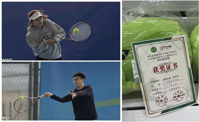 3月8日,由合肥市体育局,合肥市网球协会共同举办“合肥市三八国际妇女节网球联赛”在南艳湖体育公园举行。我校网球队队员22工管张佳妮和24土木左知恩参加了此次比赛。在比赛过程中,我校学子充分发挥顽强拼搏的运动精神,最终由张佳妮同学搭配友邻高校队员荣获乙组女双第三名的好成绩。