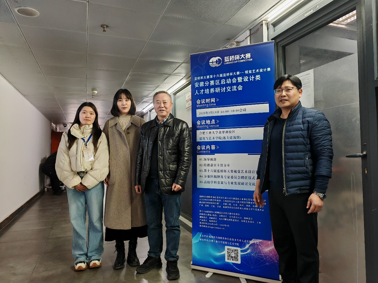 3月15日下午,第十六届蓝桥杯大赛——视觉艺术设计赛安徽分赛区启动会暨设计类人才培养研讨交流会在合肥工业大学建筑艺术学院隆重举行。建筑与艺术学院院长陈晓华、工业设计教研室主任姜炎、视觉传达教研室副主任杜冰、动画教研室副主任王婷玉参加会议,共同探讨设计教育与赛事联动的创新路径。