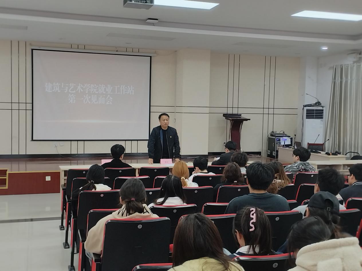 为扎实推进建筑与艺术学院就业工作做深做实,3月27日下午,建筑与艺术学院就业工作站第一次见面会在滨湖校区图书馆一楼小礼堂举行。建筑与艺术学院党总支副书记童锐、团总支书记李鑫洋、就业工作站教师及学生代表参加会议,会议由童锐主持。