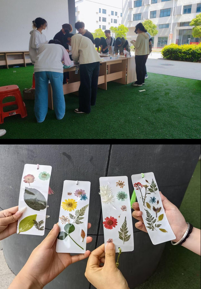活动开始之初,就受到了广大同学的热烈响应。大家纷纷报名参加,期待能够亲手制作出独一无二的干花书签。活动现场,参与者们精心挑选各种形态各异、色彩斑斓的干花材料,在指导人员的帮助下,将这些美丽的干花巧妙地固定于透明书签之中。每一片书签都承载着制作者的独特创意与美好期许,仿佛是春天的一抹亮色被永远定格。
