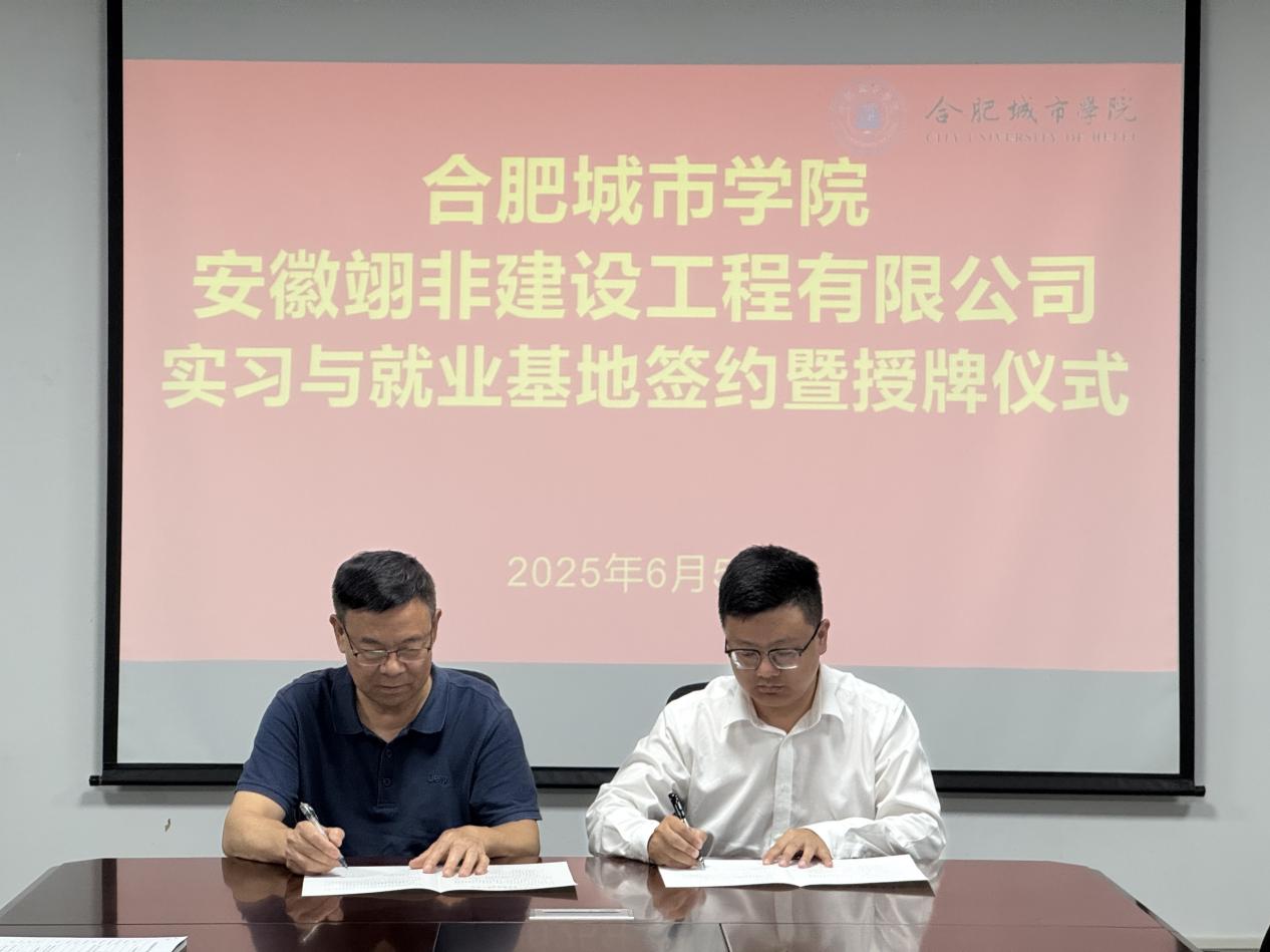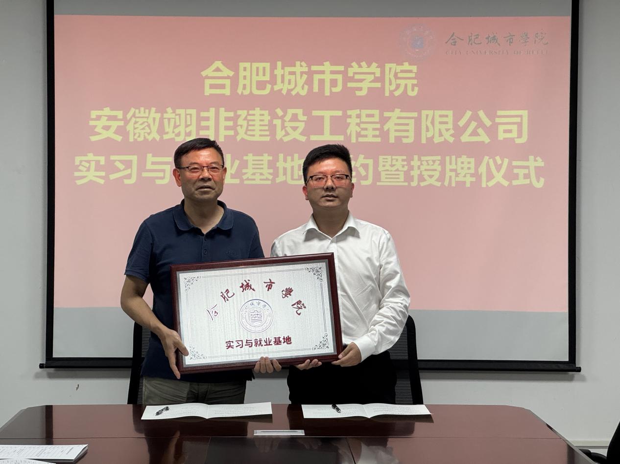 6月5日下午,土木工程学院在实验楼北302会议室召开校企合作洽谈会。邀请安徽翊非建设工程有限公司、安徽楚元建筑劳务有限公司两家企业相关负责人来校洽谈合作,学院院长雷庆关、党总支副书记张敬知出席会议,土木、道桥有关专业负责人参加座谈会。双方就深化产教融合、协同育人等议题展开交流,并签订实习与就业基地协议,现场举行授牌仪式。