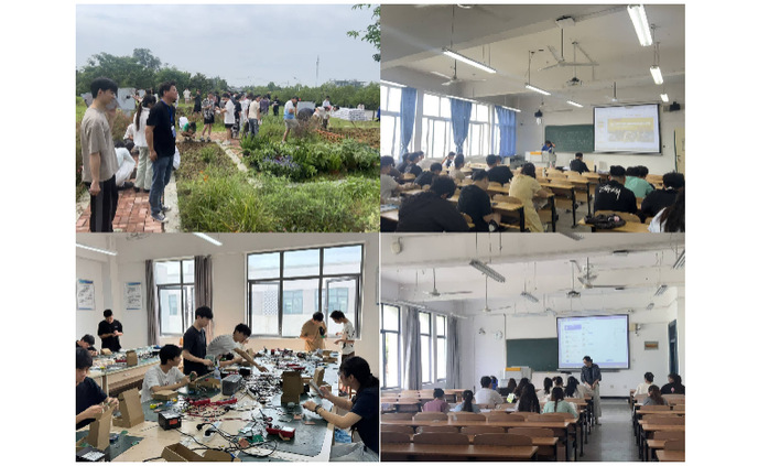 教学楼的课堂内答辩氛围热烈,学生围绕课题各抒己见,老师适时引导启发。实验室里,各小组根据任务安排,开展协同工作。在户外实习实训基地,园林工程实践教学中将专业教育与劳动教育充分结合,师生开展工程施工、花境种植等教学活动。集中实践环节教学形式丰富,教学效果良好。