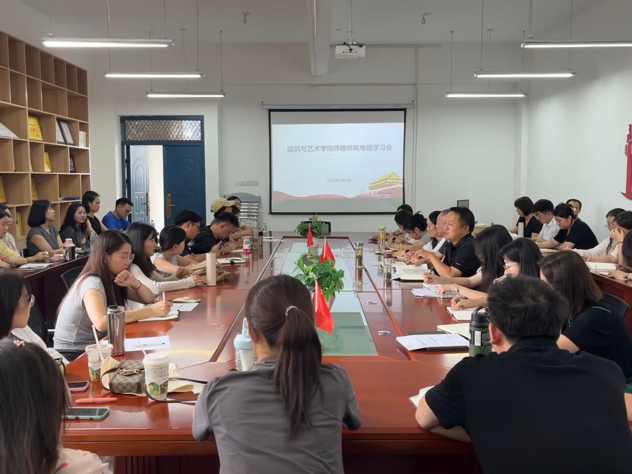 为进一步加强师德师风建设,营造风清气正的育人环境,9月4日下午,建筑与艺术学院党总支在西教三楼会议室组织召开师德师风专题学习会。学院领导班子及全体教师参加会议,会议由党总支副书记童锐主持。