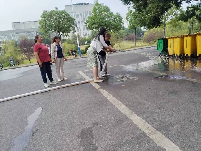 随后,朱子豪与许培生站长带领新生前往宿舍区,开展消防栓使用方法的实地教学。站长现场演示消防水带的正确连接方式,细致讲解接口对接、水带展开、阀门开启等关键步骤,并着重强调日常检查与储水准备的重要性。在站长的耐心指导下,新生和宿管阿姨积极动手尝试,成功完成消防栓与水带的连接并喷出水柱,在实践操作中切实掌握了基本消防技能。