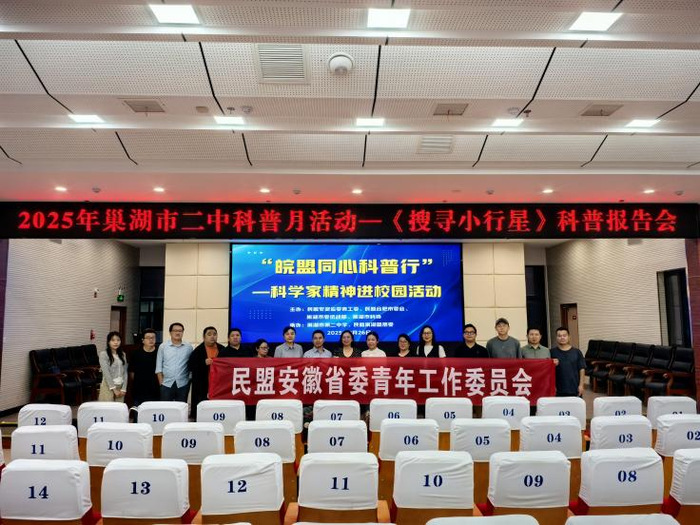 为弘扬科学家精神,激发青少年科学兴趣,9月26日,“皖盟同心科普行”——科学家精神进校园活动在巢湖市第二中学开展。本次活动由民盟安徽省委青工委、民盟合肥市委等主办,我校科技处副处长陈前程代表星空在线注册(中国)官方网站-注册登录参加了此次活动。
