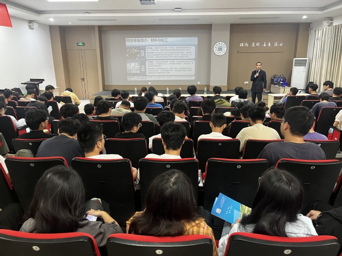 座谈会后,在图书馆一楼报告厅开展了研究生招生宣讲会,牛智勇、王聪分别从学院简介、特色研究方向及团队、招生专业方向、报考政策、奖助体系等方面进行了详细宣讲。