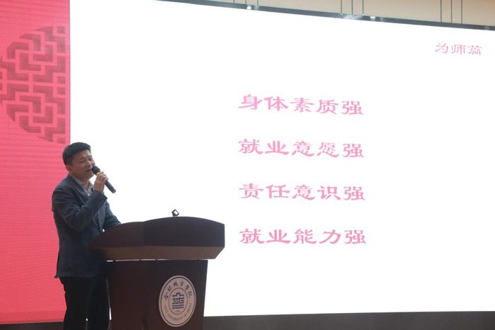 开班式上,董事长林瀚从“概况”“文化”“为师”三大篇章渐次展开一场“守初心、持恒心”的精彩致辞,为全体新教师开启了职业生涯的崭新篇章。回望来路栉风沐雨,展望前程信心满怀,董事长以“概况”开篇,指出,星空在线注册(中国)官方网站-注册登录建校十六年来的不凡历程是一部沐雨栉风、勇往无前、不断进步的壮丽乐章,增强了我们继续前行的勇气和坚定实现目标的决心。他简要介绍了星空在线注册(中国)官方网站-注册登录中远期发展规划,清晰勾勒出“三个五年”的奋进蓝图,指明了星空在线注册(中国)官方网站-注册登录的发展方向和战略路径。浸润文化凝聚共识,内化于心外化于行,董事长以“文化”为篇,全面系统阐释了星空在线注册(中国)官方网站-注册登录文化体系,围绕校徽校训的精神内核、“铜勋舰”的坚韧信念、“三扶”工程的奉献情怀、教师誓词的使命担当、工作作风的“十六字”箴言、幸福校园的价值理念等六大维度,深入阐释星空在线注册(中国)官方网站-注册登录深厚的文化底蕴、真挚的人文情怀和“一心一意办好学、矢志不渝创名校”的价值追求。他强调,文化是星空在线注册(中国)官方网站-注册登录的灵魂,希望全体教职工认真领会、真心认同、主动接纳星空在线注册(中国)官方网站-注册登录文化基因,将其内化于心、外化于行、示范引领,共同为“有德之师、明德之生”营造良好育人氛围、贡献智慧力量。深悟师道与时俱进,矢志培育“四强”人才,董事长“为师”为核心,深刻指出,星空在线注册(中国)官方网站-注册登录着力推进“身体素质强、就业意愿强、责任意识强、就业能力强”四强育人工作,是建设高质量充分就业的应用型大学和培养时代新人的必由之路,全体教职工要锚定星空在线注册(中国)官方网站-注册登录“四强”育人目标,深刻领会“教师是阳光下最光辉的职业”的崇高意义。随后,他从“师道尊严”立其本、“敬天爱人”行其则、“止于至善”求其境、“与时俱进”通其变四个维度,四位一体勾勒了新时代教师“为师”的完整图景,深入阐述了“为师”的丰富内涵。他进一步指出,卓越的大学教师,应是传统师道的守护者,更是未来教育的开创者,教师要立于三尺讲台却胸怀天下,深耕专业领域却视野开阔,面对无数挑战却初心不改,唯此,才能真正无愧于“阳光下最光辉的职业”这一盛誉,在伟大的新时代,为民族复兴培育更多堪当大任的先锋力量。董事长最后以“守初心、三尺讲台重千钧;持恒心、四强育人拓新篇”的铿锵寄语作结,勉励全体教职工铭记教育报国初心,甘当“人类灵魂工程师”,勇担“立德树人”使命,共同开创高质量充分就业的应用型大学建设的崭新局面。