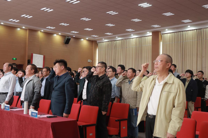 在庄重的氛围中,人事处处长带领全体教师进行集体宣誓。誓言有声,育人无形。铿锵有力的承诺,不仅彰显了教师们坚守教育初心、恪守职业道德的坚定决心,也让大家更加明确了作为教育工作者的使命与担当,为后续的教育教学工作注入了强大的精神动力。