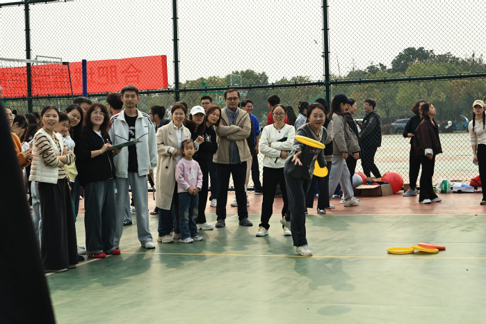 本次趣味运动会精心设置了多个集趣味性、协作性和挑战性于一体的项目,包括同心鼓、凝心聚力、袋鼠运瓜、一锤定音、拔河比赛等。活动筹备阶段,工作人员提前完成了场地划分、道具检查等工作;下午1时许,各参赛队伍陆续到场,有的队伍围在一起熟悉项目规则,有的队员拿着飞盘、保龄球提前试练,现场氛围轻松而热烈。