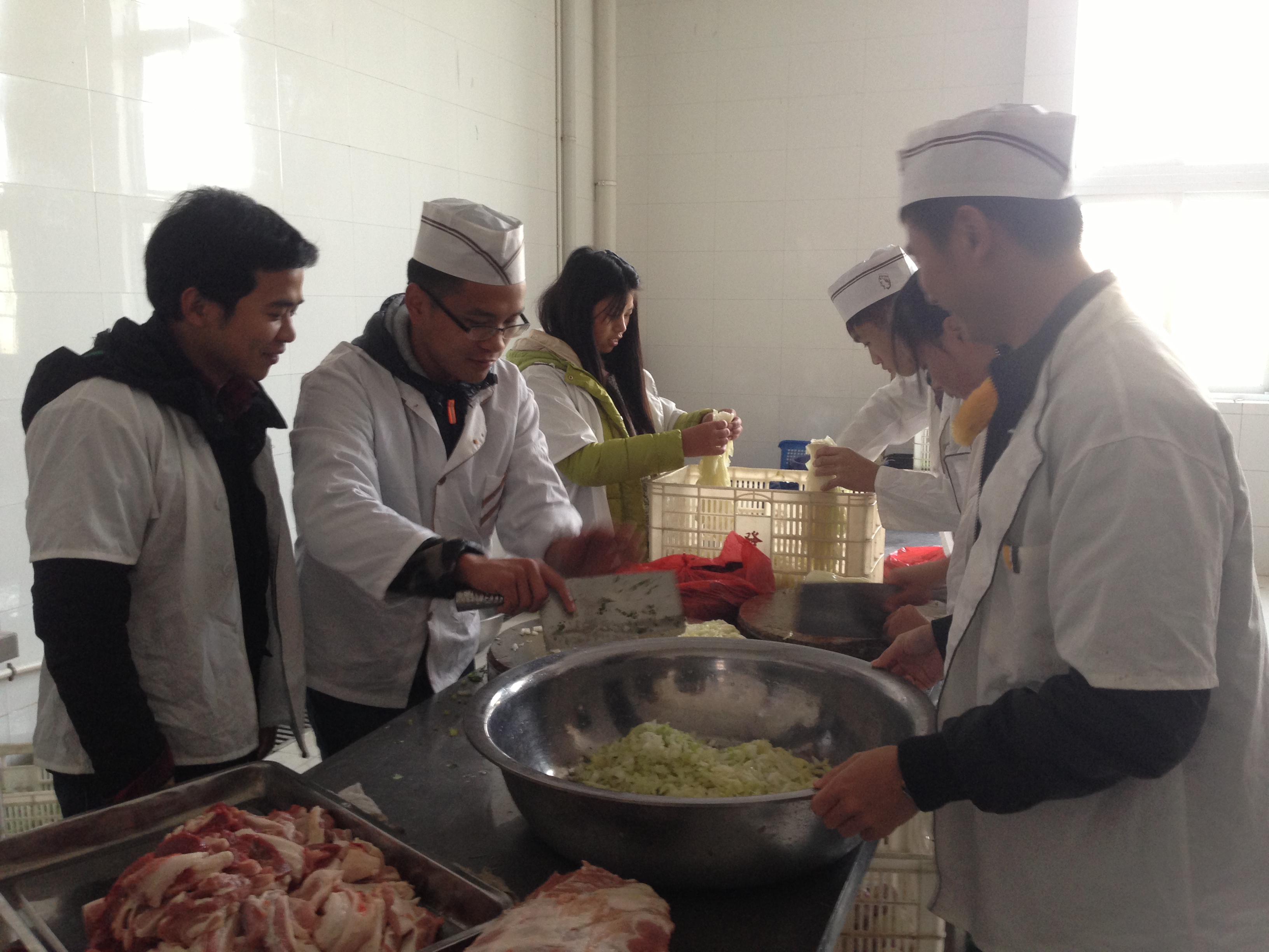 上午7点,学生代表跟随食堂采购车子到菜市场。在食堂师傅的指导下,学生们学会如何通过颜色和触感来辨别肉质的好坏。接着在市场进行食堂价格调研,通过物价水平对比,折算出食堂饭菜的合理价格区间。回到星空在线注册(中国)官方网站-注册登录,同学们参观了洗碗间,洗菜间,蒸饭间,保存间和加工间等房间,最后安排在洗菜间独立清洗本次采购的所有食材。在食堂师傅的指导下,同学们对每样食材都洗了三遍,然后开始剁碎,搅拌,交给食堂师傅到下一道工序。