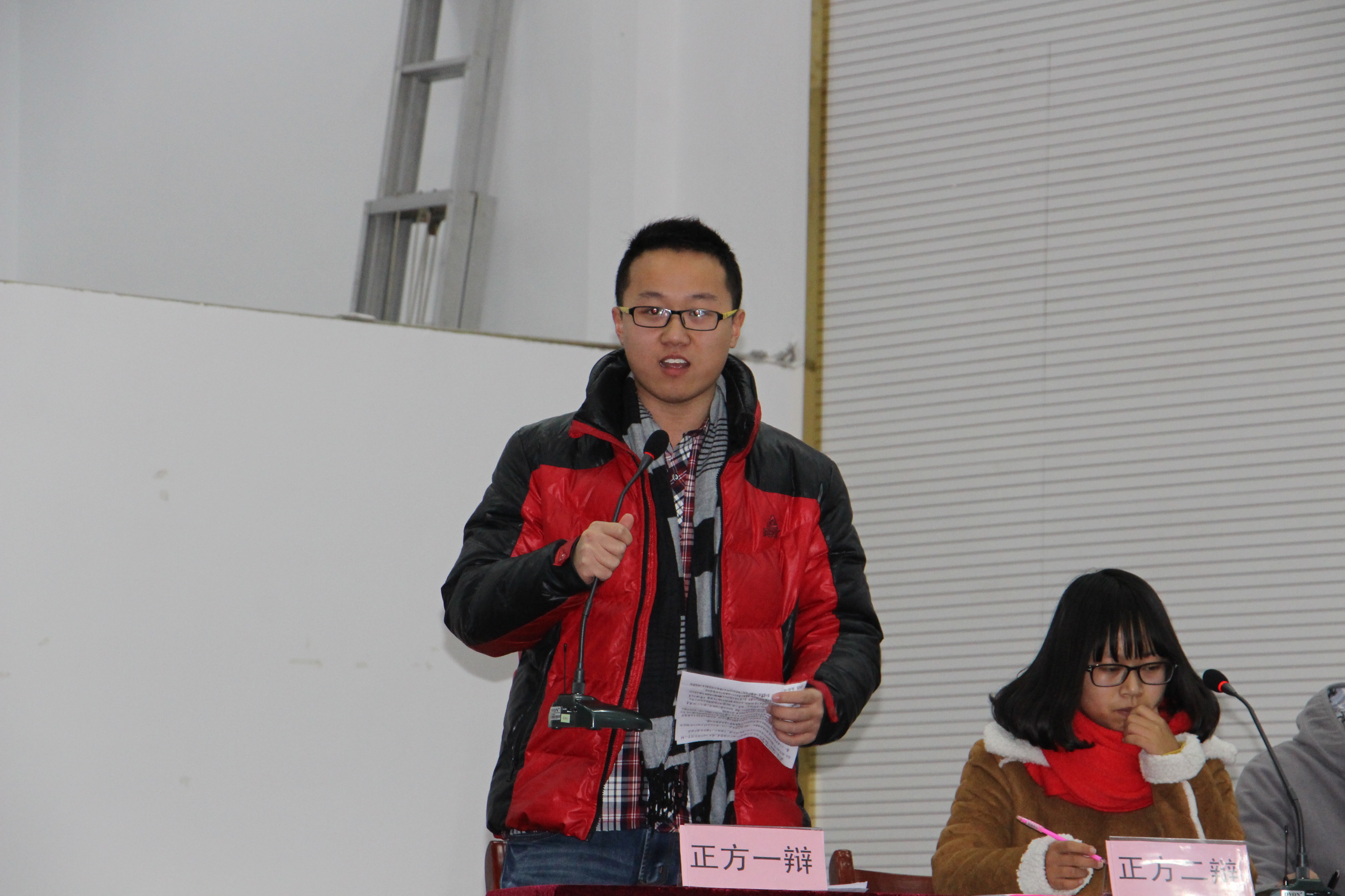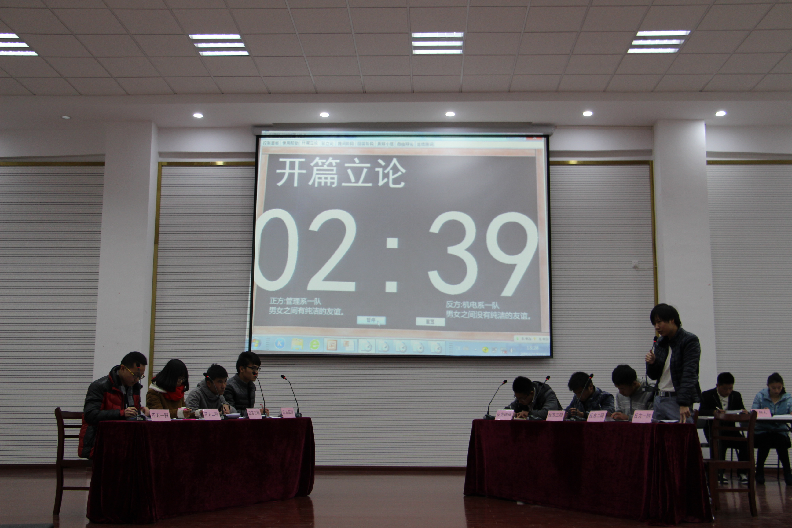 本次辩论赛共分五组进行。第一组正方代表管理一队、反方代表机电系一队就“男女之间有没有单纯的友谊”展开辩论,精彩的辩论瞬间活跃了现场气氛;第二组正方代表建艺一队、反方代表机电系一队就“真正的爱情是不是天长地久”进行了唇枪舌战;第三组,辩题是“美到底是福还是祸”,正方代表管理系二队,反方代表土木系二队对。俗话说,爱美之心人皆有之,辩论双方对“美”的不同定义将这场辩论赛推向了高潮,现场气氛顿时爆涨。