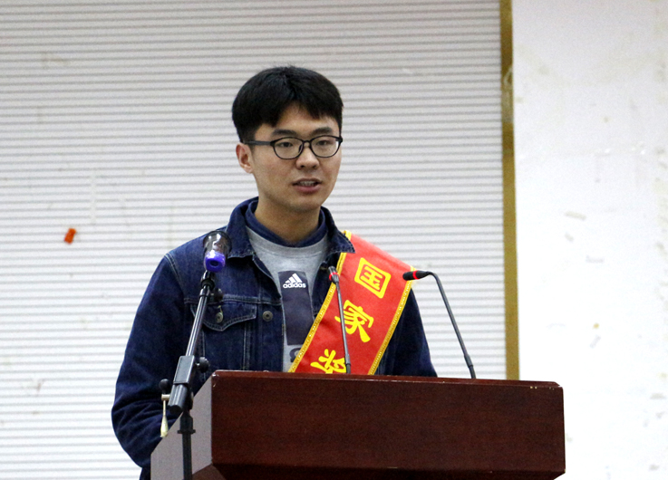 我是14级土木工程专业学生丁磊磊。今天很荣幸能代表国家奖学金获得者发言。首先我想给大家分享一个自己的小故事。我给高中朋友说,我拿了国奖,朋友惊讶的大叫了一声说:你都可以拿国奖了啊?是啊,我这样一个之前很普通的学生都可以拿国奖,现在大一,大二的你们还有什么不可能呢?人的进步往往就在于,你能不能把别人喝啤酒的时间用在喝咖啡上:当其他人沉醉于花天酒地乐不思蜀的时候,你能不能喝一口咖啡保持清醒,为了自己的父母、家庭和事业而拼搏呢?而我一直认为,真正的优秀是优于过去的自己。