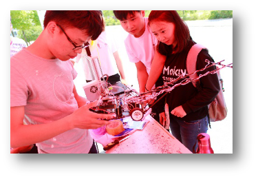 此次科技展于6月7号上午11点半在食堂的十字路口如火如荼的开展,上午11点左右我院科协的工作人员就开始在活动场地进行展品的摆放。展品一经摆出,陆陆续续就有不少城建科技迷们观看所展览出的科技作品,在观看的同时积极地与机电系的相关专业的学长学姐进行交流,对作品的工作原理和工作性能进一步的了解。其中学长学姐们的耐心解答和科技迷们的专心聆听的认真态度都反映出他们对科技方面知识的浓厚兴趣,同时也不难看出他们对科技创新方面知识都有一定的了解。除了对观看者传输一定的专业知识外,我们的工作人员也对部分科技作品进行了演示,其中大家对3D打印机格外关注,不少人反映是第一次如此近距离的接触3D打印机。也有不少同学尝试在电子实验室的同学指导下去演示科技作品,一定程度上锻炼了大家将理论知识付诸于实践的能力。
