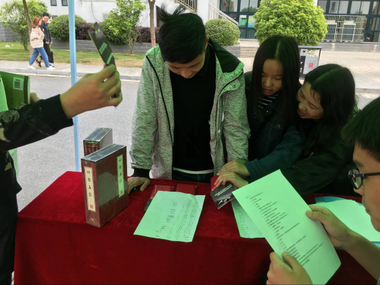 阅中华文化活动由三个开展形式各具特色、目的殊途同归的活动构成。首先为本次活动拉开序幕的是本月十六日在食堂门口开展的文化月之文化积累——知识竞赛暨文化月开幕式,该活动通过现场答题的形式进行,可谓是紧随流行文化的脚步。答题活动开始不久,同学们就蜂拥而至,积极参与,不仅获得了工作人员精心准备的小礼物,还收获了宝贵的知和满满的快乐