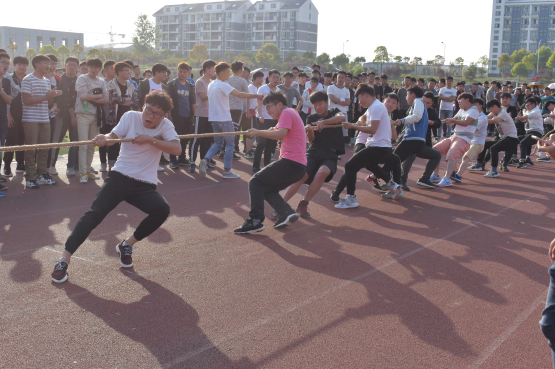 最后进行的是以班级文化为核心的“文化月之班级文化——拔河比赛”,班级文化是由班级成员携手创造的,团队精神和班级凝聚力尤为重要。本次比赛由各班自选十五人组队参与,在田径场举行。场面热闹非凡,同学们排成一列纵队,沿绳交叉而站,参赛队员们凝神聚力不肯放松,你不让我我不让你,各班展开一一角逐。没参加比赛的同学们也没闲着,在一旁观战的同时不忘高呼加油。拔河活动重在增进同学之间的交流,增强班级学生的团队意识和凝聚力,以便在日后的学习和生活中互帮互助、团队协作,携手走过愉快充实的大学之路。