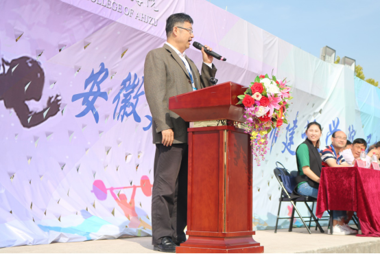 在入场式和升旗仪式结束后,我院副院长田园为运动会致开幕词,他希望运动员们能够发扬“友谊第一,比赛第二”的精神,敢于进取,勇于拼搏;赛出风格,赛出水平。同时,希望全体裁判员和工作人员要本着“公平、公正、公开”的态度为比赛创造良好竞赛环境。接着,运动员代表黄敏同学、裁判员代表黄家星老师分别上台进行了宣誓。宣誓完毕后,由我院院长张伟林教授宣布本届运动会正式开始。