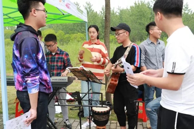 话剧社作为人气高涨的社团,上演了一场有声有色的“你演我猜”游戏。由两名同学组成小组,一人用肢体表演话剧社提供的词语,另一人猜,规定时间完成即可得到贴纸。参与这一游戏的同学们有的手舞足蹈;有的抓耳挠腮;有人紧盯动作害怕放过任何细节;有人机智猜中赢得一片欢呼,顿时话剧社气氛被炒得火热,越来越多的人围上前来观看他人游戏或参与其中。一旁的爱音社也传来了动听的歌声,前来挑战的同学可以与爱音社中擅长唱歌的社员一起合唱一曲一展歌喉,也可以和他们对唱同首歌一较高下。