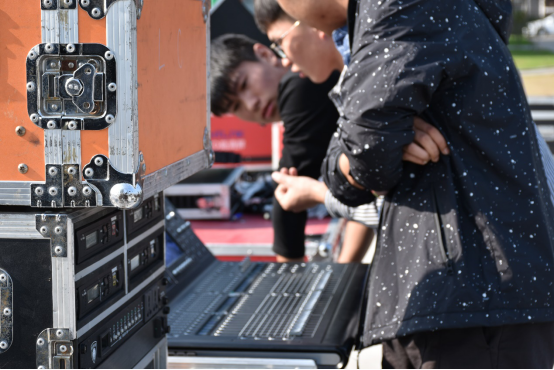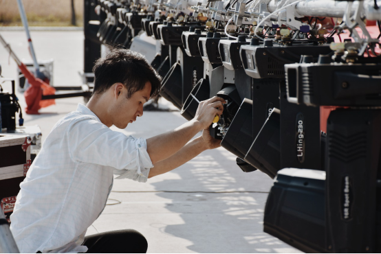 工作人员不断调试机器,为了向大家展示一个完美的晚会