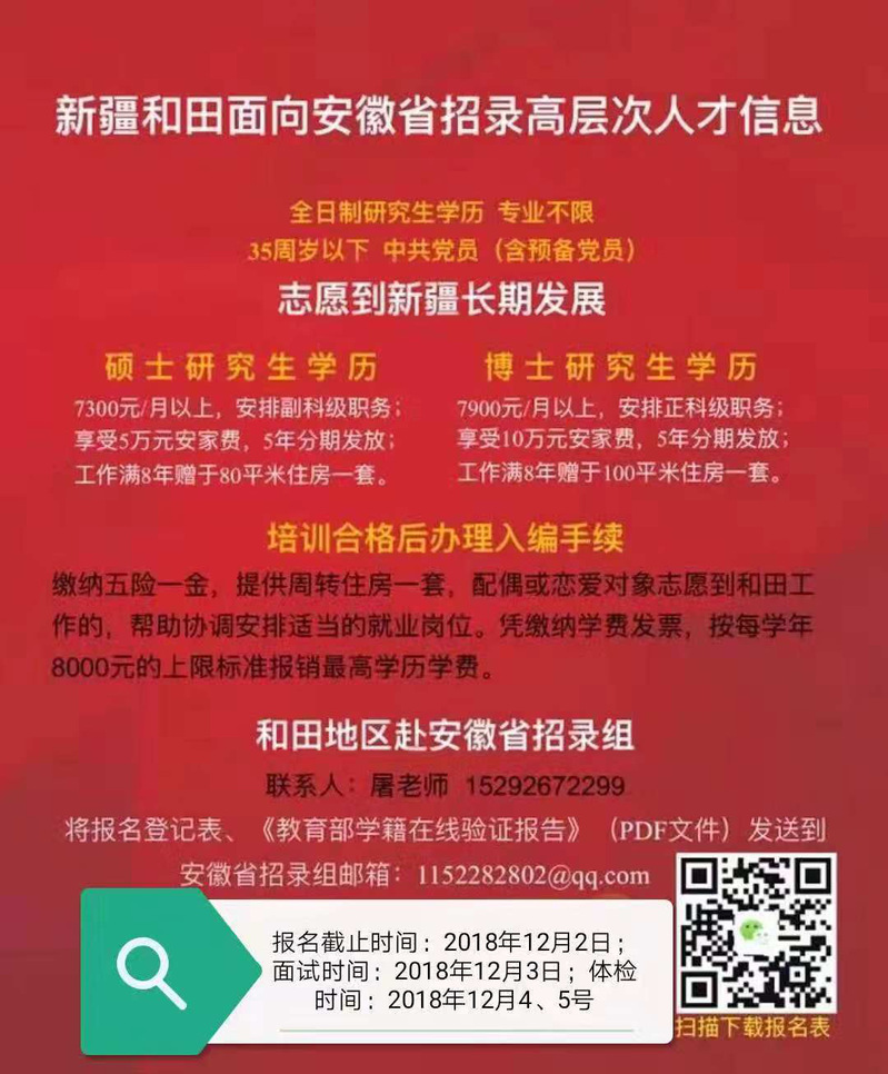 安徽建筑大学城市建设学院就业指导处现转发新疆和田面向安徽省招录高层次人才信息的通知:
