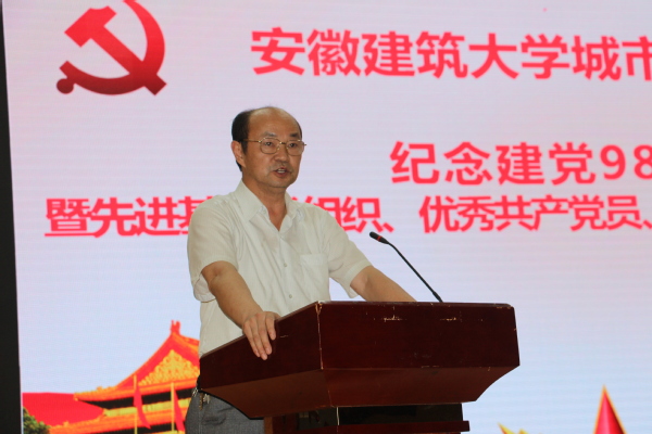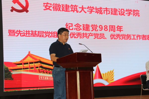 2019年7月1日,安徽建筑大学城市建设学院纪念建党98周年暨先进基层党组织、优秀共产党员、优秀党务工作者表彰大会,在图书馆二楼大礼堂隆重召开。学院党委书记李义宝、副院长王志建、副院长田园以及全体党员参加大会,表彰大会由学院党委副书记魏宪友主持。