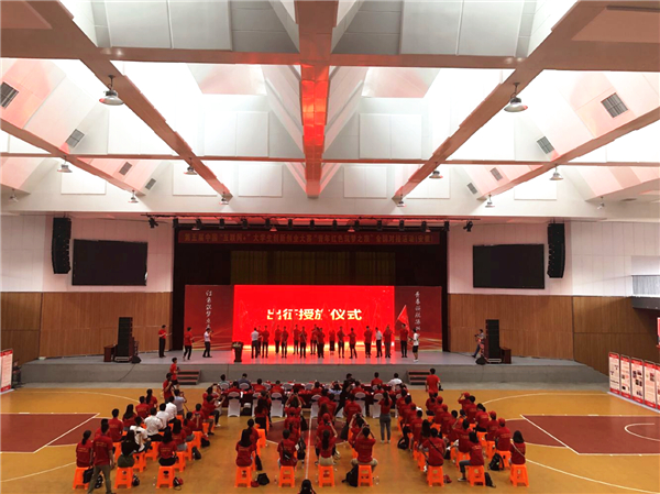 在此次活动上,教育部高教司综合处副处长吴维东,安徽省教育厅副厅长储常连,六安市人民政府副市长王岚,皖西学院党委副书记、校长刘学忠等领导为“科技中国小分队”“幸福中国小分队”“健康中国小分队”“教育中国小分队”“法治中国小分队”代表进行出征授旗。