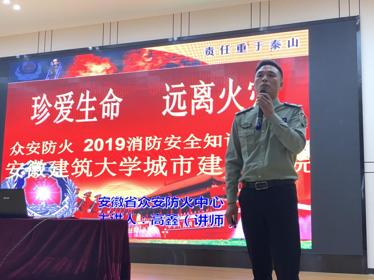 9月11日,为增强学生的自救、自防意识,提高大学生火灾应急处理能力,更好的保障生命财产安全,安徽建筑大学城市建设学院在图书馆二楼报告厅举办“珍爱生命 远离火灾”消防安全知识专题讲座。并邀请了安徽众安防火中心高鑫作为主讲人。院后勤保卫处相关人员、全体新生辅导员和19级新生代表约500余人参加了培训。讲座活动由学院后勤保卫处长祝杰主持。