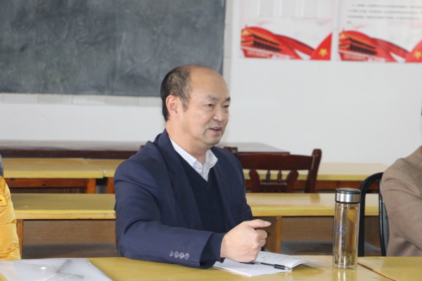 城市建设学院党委书记李义宝发表讲话。李书记首先对这次与张疃村村委成员的见面表示荣幸,接着他从实际操作的角度,提出了基层党建工作共驻共建的新思路。李书记指出,可以创造性地设置校外辅导员这种方式,用实践加强年轻人和基层的联系;与此同时,学生也应多走出校园,关心留守儿童和贫困村民,从细节中体会“为人民服务”等。