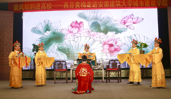 听丝竹吹时,谁不赞梨园盛事;问管弦响处,何须期白雪阳春。1217日,国家一级演员韩再芬老师带领再芬黄梅艺术剧院走进安徽建筑大学城市建设学院,为师生带来了高雅唯美的经典曲目——黄梅戏。此次活动由省委宣传部、省教育厅、文化和旅游厅主办,共青团安徽建筑大学城市建设学院委员会承办。旨在提高城建学子的审美高度和人文素养,陶冶高尚情操,用传统文化的独特魅力温润莘莘学子的心灵,全面提高文化修养。